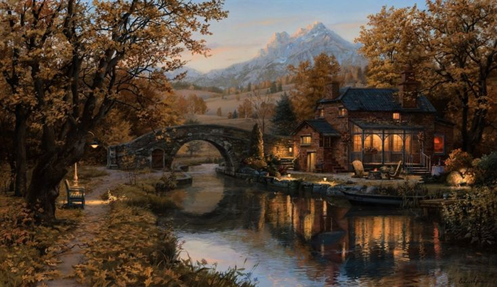 His canvases transport us to the most remote corners of the planet, to places where light plays by its own unique laws. We see majestic mountain landscapes bathed in the golden glow of sunset, or quiet city streets bathed in soft evening light. Every detail, every shade, is rendered with incredible precision, creating a sense of presence.